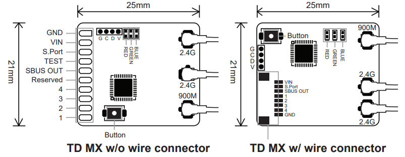 Na vysílači zvolíme režim Tandem - TD a přivedeme do režimu registrace. Zmáčkneme a držíme tlačítko na přijímači, přivedeme napájení, LED červená a zelená svítí. Pokud rádio najde přijímač, napíše jeho typ. Ten potvrdíme na rádiu a přijímač začne střídavě blikat zelenou a červenou LED. Zvolíme pozici přijímače podle potřeby a dáme Bind, přijímač odpojíme od napájení a opět zapojíme do napájení (bez tlačítka), rádio opět napíše typ přijímače a ten odsouhlasíme. Přijímač zůstane zapsán v dané pozici.Led indikace